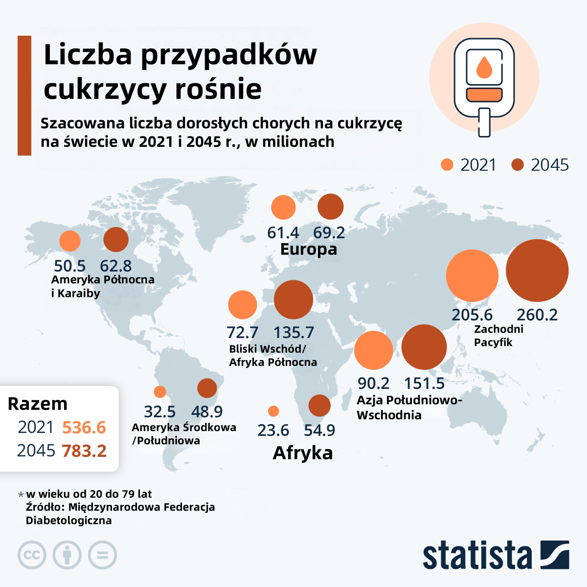Według danych Światowej Organizacji Zdrowia (WHO) liczba osób chorujących na cukrzycę rośnie na świecie o około 3% rocznie.